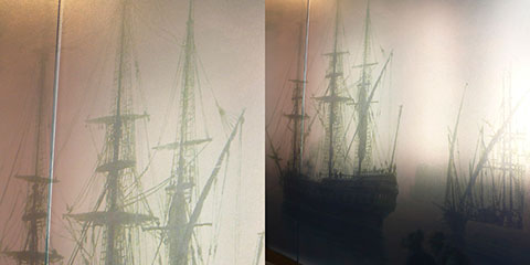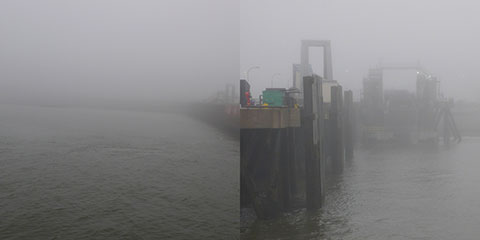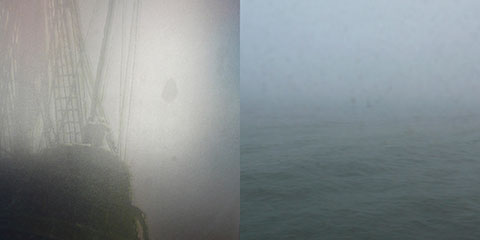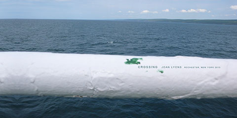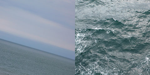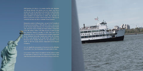 2013, 48 pages, 8 x 8"saddle sewn, Indigo digital printing. Photographs made during a ferry crossing from Nova Scotia to New Brunswick in August, 2010 and at the Museum of Immigration at Ellis Island in September, 2012 weave together and end with a brief mmigrant story.