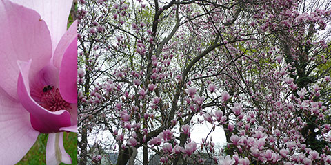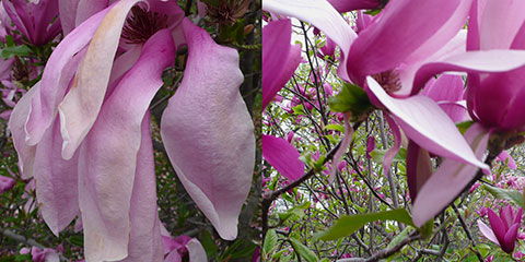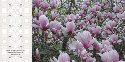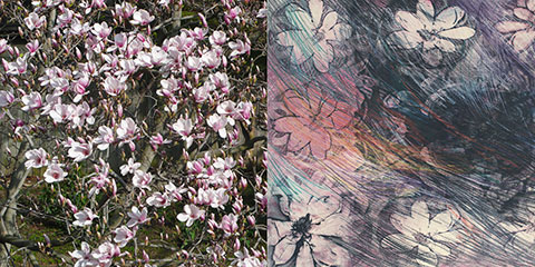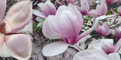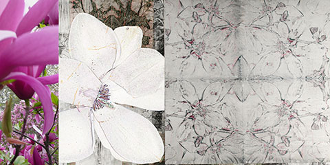 A study of magnolias encompassing recent photographs and drawings from the 1980s.