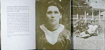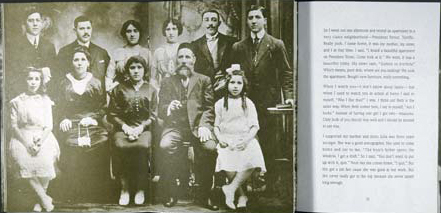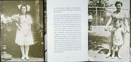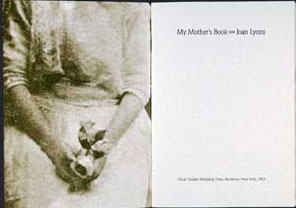 1993, 48 pgs, 5.75 x 8" Only a few family stories survived, along with fewer pictures. The voice is my mother's, although this book begins with my grandmother's dream and ends with mine. I have allowed myself to make such a personal book because the words and images are so typical of her immigrant generation. The structure of the book is a double pamphlet. I felt that different openings revealing random combinations of texts and images resembled the structure of memories more closely than a linear reading would . |