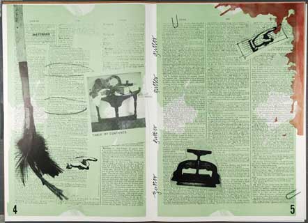 collaboration with We used every book-related bad pun and miserable metaphor we could think of. This piece (actually a tabloid) was made as a handout for the "Independent Art Publishing Conference and Bookfair" at Visual Studies Workshop in 1979. Organized by Don Russell and Helen Brunner, it was a landmark artists' book conference that drew participants from Europe and Mexico as well as an amazing array of book publishers and dealers. It was the first time so many of us gathered in one place. |